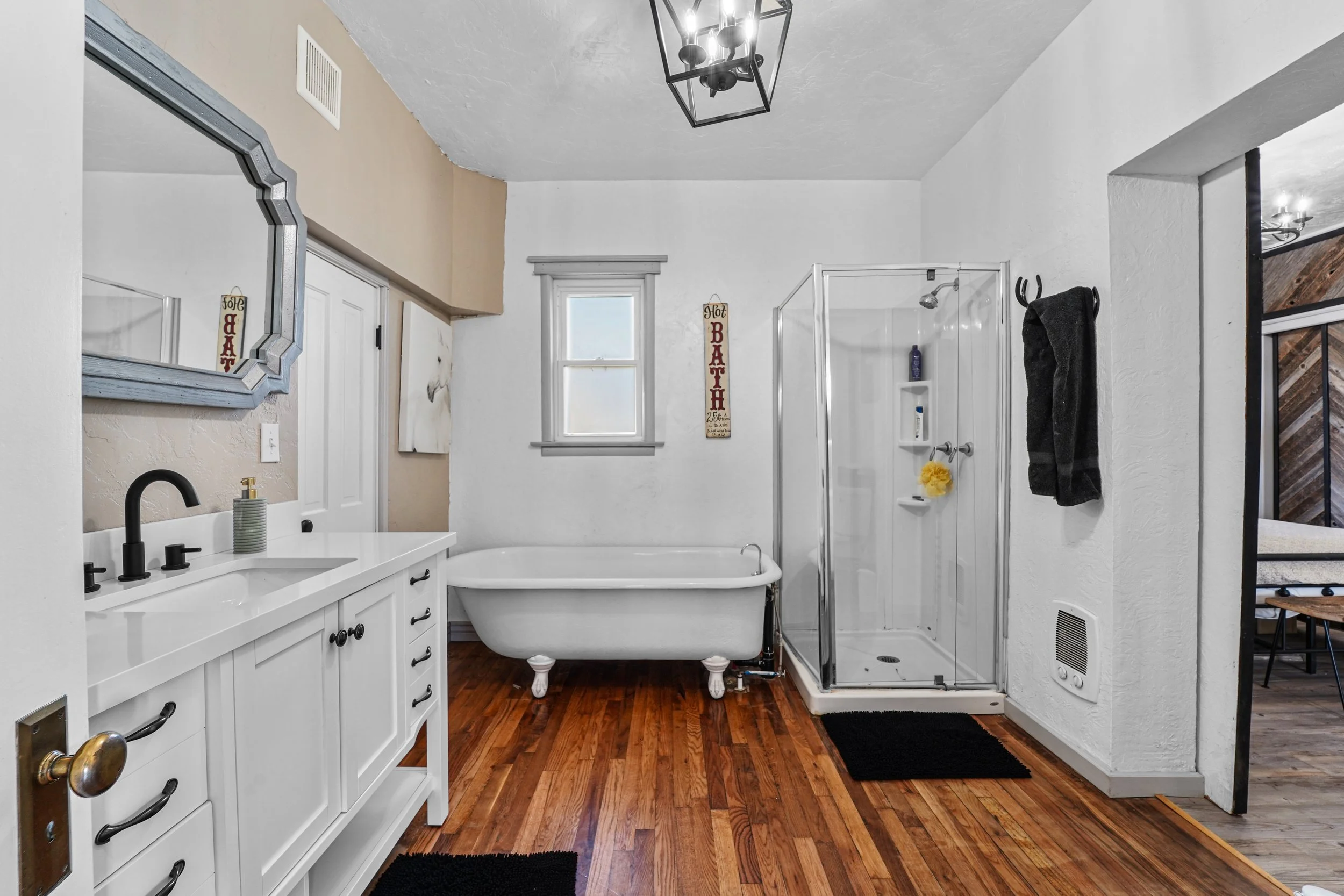 This beautifully renovated home is filled with character and country charm! With 3 bedrooms, 2.5 bathrooms and 1875 sq ft, this farmhouse- style gem offers stunning features and modern functionality. The adorable kitchen is an absolute showstopper, featuring gorgeous countertops, farmhouse stylish cabinetry and lighting, a walk-in pantry and a beautiful center island with seating. The large family room provides plenty of space to relax. The dining room, filled with natural sunlight, creates a warm and inviting atmosphere for gatherings. A darling sunroom adds even more charm and space, filling the home with natural light and character. The primary suite offers complete luxury with a cozy fireplace, freestanding soaker tub, walk-in shower, dual vanities and a walk-in closet. Enjoy a spacious yard with mature trees, RV parking and the freedom of no HOA's or CC&Rs. Nestled just minutes from downtown Caldwell, this country charm would also be a great Airbnb home!