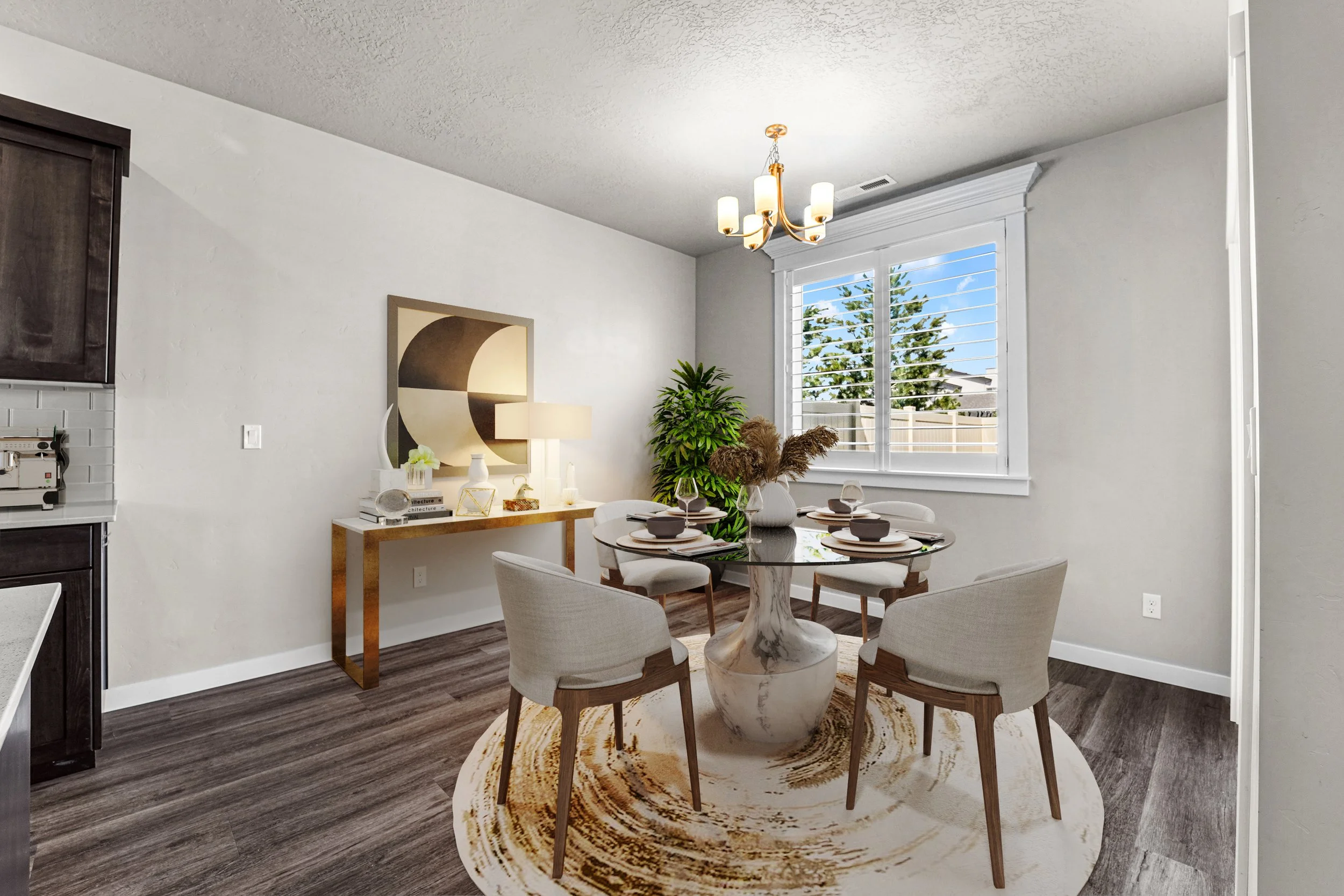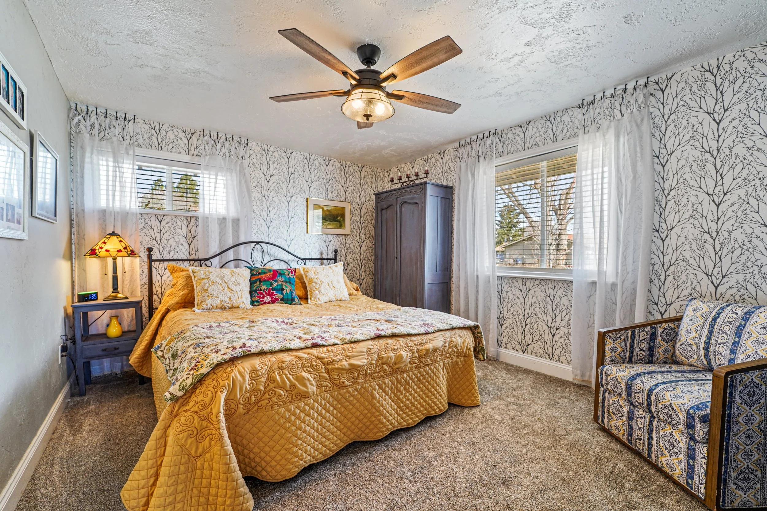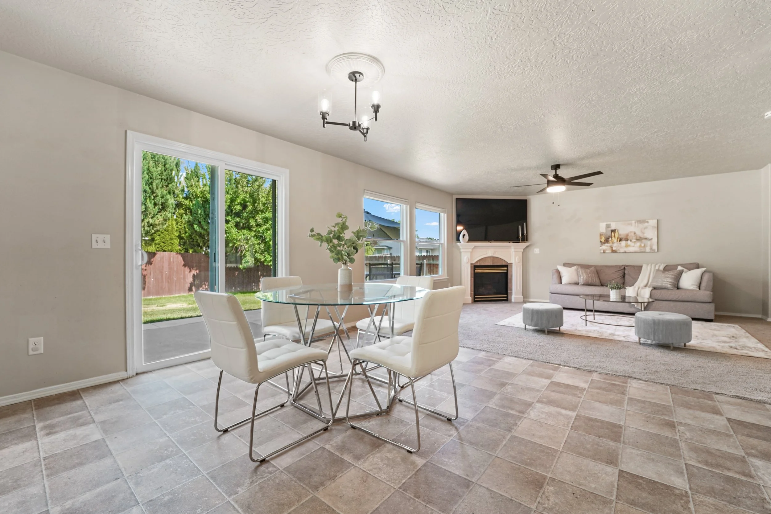 Step into this beautifully updated 3-bedroom, 2-bathroom home where comfort meets character. Inside, you'll find brand-new flooring throughout, fresh interior and exterior paint, and striking rustic design elements like a custom accent wall and kitchen bar crafted from authentic 1930s barn wood sourced from Boise. The kitchen shines with new lighting, a new dishwasher, a new oven, perfect for everyday cooking or entertaining. The spacious master bedroom offers a peaceful retreat with a walk-in closet and a private bathroom featuring a walk-in shower. The enclosed patio offers a comfortable, protected space for year-round enjoyment perfect for relaxing, dining, or hosting friends. The backyard also features an 8x8 storage shed, garden boxes, mature grapevines, raspberries, an apple tree, mature shade trees, and a cozy fire pit. As a bonus, the home is located in a welcoming community with access to a community pool, play area and walking paths. Come home to a backyard that feels like your own private retreat!