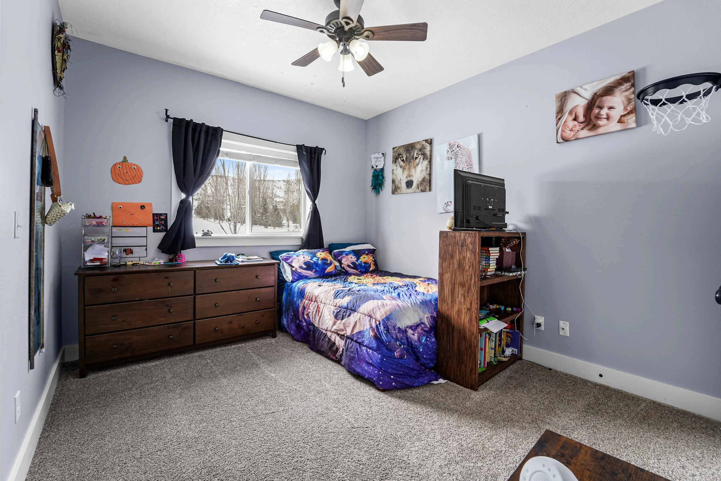 This 4-bedroom, 2.5-bath home offers 2,337 sq ft of versatile space with both living and family rooms, a cozy gas fireplace, new windows, updated lighting throughout, and a modern security system. The kitchen features a center island with breakfast bar, a new dishwasher, new farm sink, and windows overlooking the backyard—perfect for enjoying the view while you cook. The spacious master suite includes a walk-in closet, relaxing soaker tub, and walk-in shower. Owned solar panels help keep energy bills lower than $10 a month! Step outside to a large backyard with mature trees, a fire pit, expansive patio, 6'x6' shed, and room for RV parking or extra vehicles. The third garage bay has been professionally converted with insulation, heating, and cooling—ideal for a bonus room, game room, or home office. With minimal HOA and CCRs, bring your chickens and animals! This home offers comfort, flexibility, and freedom. This one checks all the boxes—come see it today!