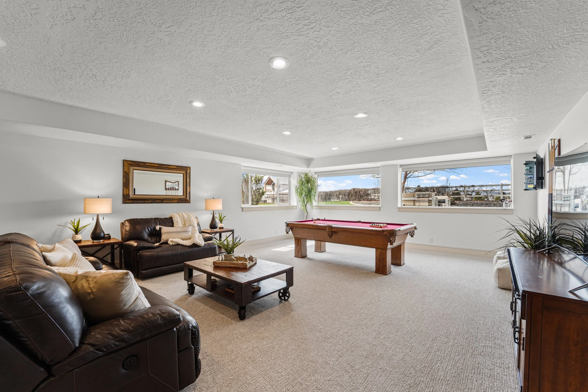 Step into this beautifully remodeled former Parade Home, perfectly situated in the heart of Eagle. Spanning an impressive 5,048 square feet, this residence features 5 spacious bedrooms, 3.5 bathrooms, and a generous bonus room, all set on nearly an acre of pristine land backing to a peaceful pond. The chef’s kitchen is a showstopper, with a Carrara marble waterfall island, quartz countertops, double ovens, built-in espresso machine, Thermador refrigerator, two dishwashers, and a walk-in pantry. Stunning surrounding windows with vaulted ceilings, engineered hardwood floors, two gas fireplaces, and a walk-out composite balcony that invites you to enjoy the serene setting. Upgrades include a surveillance system, power window coverings, dual water heaters, water softener, and a brand new smart HVAC and A/C system. Step outside to upper and lower patios, with room for animals, a pool, RV parking, RV garage or shop. A spacious 3-car garage all nestled with mature trees in a highly desired Eagle neighborhood.